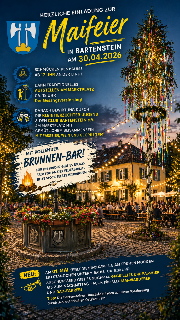 Der Club Bartenstein e.V. ist seit 2021 der Jugendverein des Orts. Er beteiligt sich an den örtlichen Festen und veranstaltet eigene Events und Aktionen. Der Verein ist gemeinnützig. Der Jugendraum befindet sich in der Bartensteiner Mehrzweckhalle in der Riedbacher Straße.